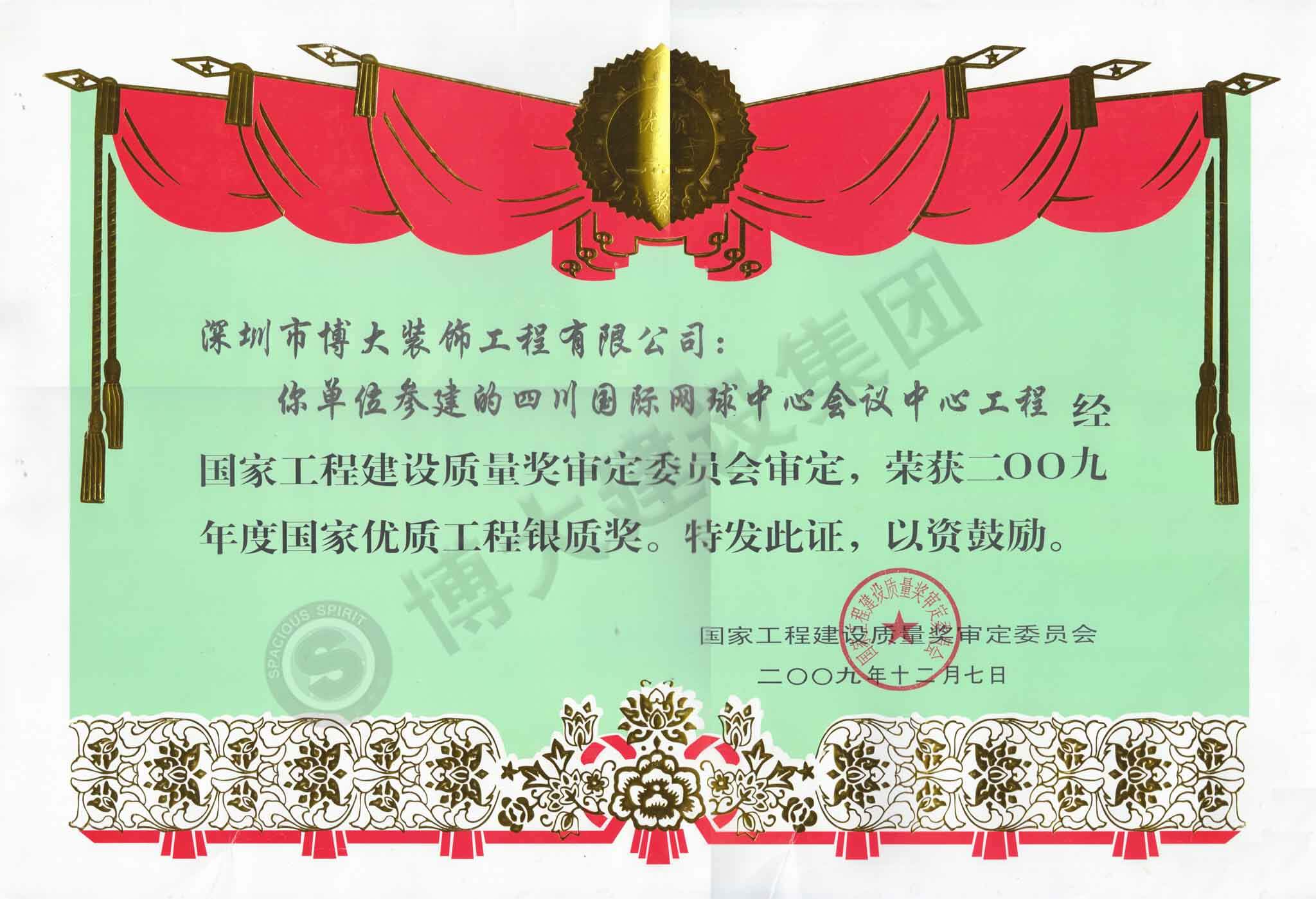 國家年度優(yōu)質工程銀質獎(四川國際網球中心會議中心工程)