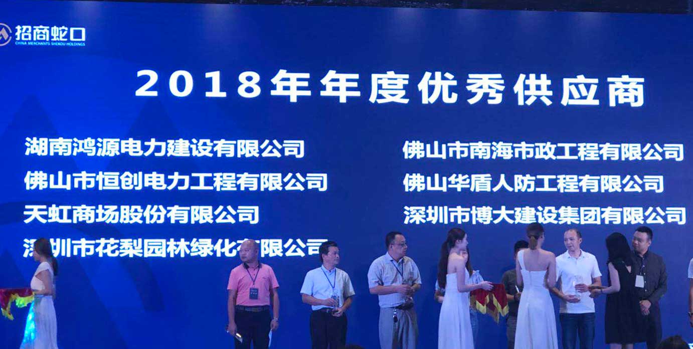 2018年9月,招商蛇口佛山公司舉行2018年度供應(yīng)商大會(huì),深圳市博大建設(shè)集團(tuán)有限公司憑借過硬的工程質(zhì)量、嚴(yán)格的工期保障、讓顧客有幸福感的服務(wù)態(tài)度,榮獲招商蛇口佛山公司“2018年度優(yōu)秀新供應(yīng)商獎(jiǎng)”。