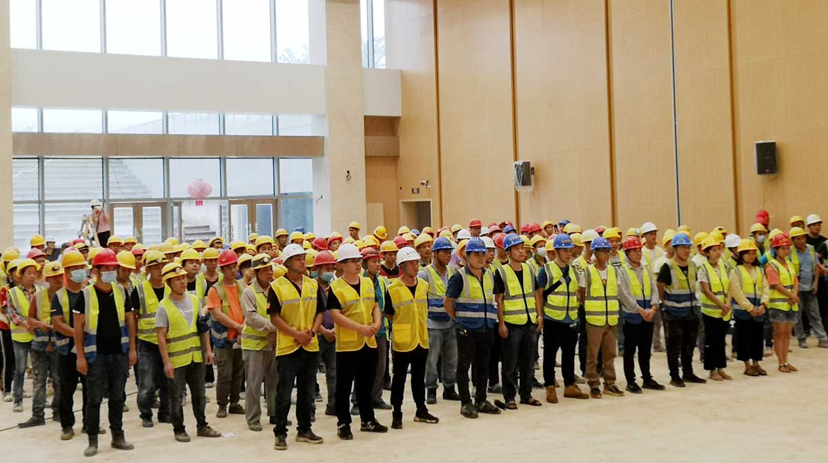 6月9日,博大建設集團柳州市民服務中心項目部500余人舉行宣誓大會,廣西分公司總經理李培陽帶領宣誓,集團副董事長黃河做動員講話。廣西五建總經理助理、三分公司黨委副書記、總經理姚開成等一行領導蒞臨現場檢查指導,并為大家加油鼓勁兒。