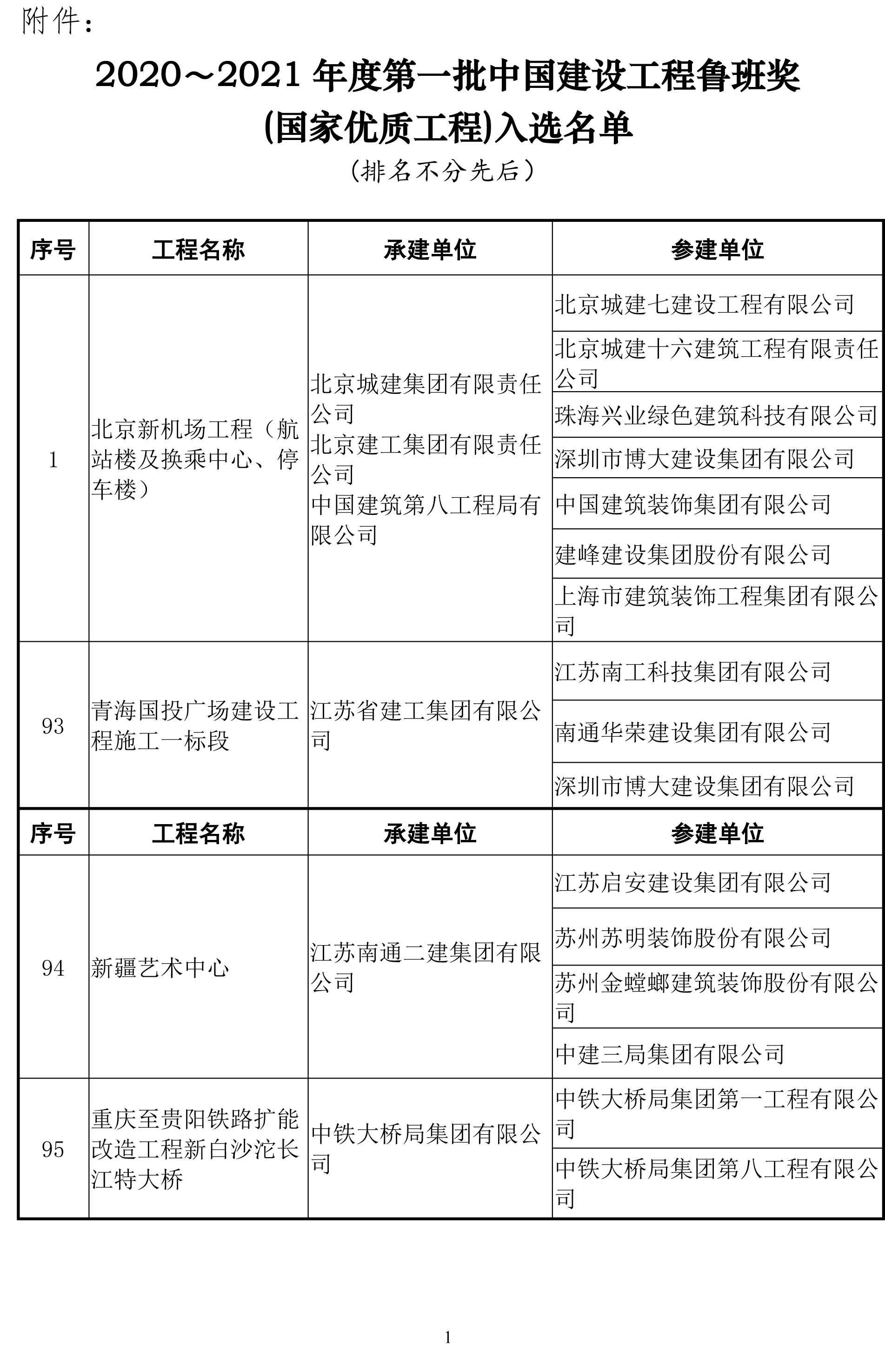11月30日,根據(jù)中國建筑業(yè)協(xié)會的公示文件,2020~2021年度第一批中國建設(shè)工程魯班獎(國家優(yōu)質(zhì)工程)申報、復(fù)查、評審、審定工作已結(jié)束,博大建設(shè)集團(tuán)參建的北京大興國際機(jī)場、青海國投廣場兩個項目榮獲國家建筑行業(yè)工程質(zhì)量最高榮譽(yù)——中國建設(shè)工程魯班獎(國家優(yōu)質(zhì)工程)。