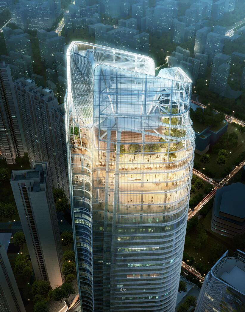 該項目是華僑城集團投資建設的第一個超高層全異形單元式幕墻,施工難度系數(shù)極高,為國內首例。博大負責施工的1#樓由一棟近300米的超高層塔樓和附屬裙樓組成,合同總金額超過1.1億。