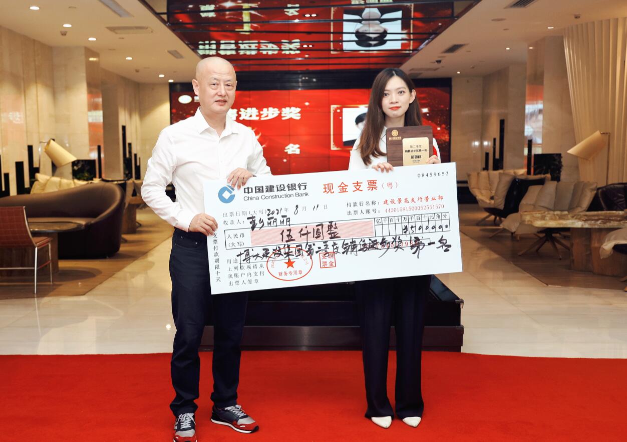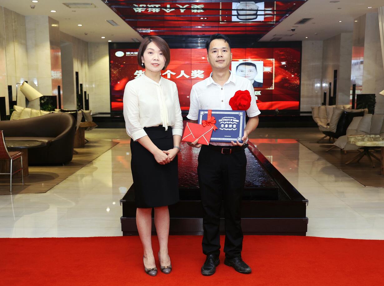 集團董事、常務副總裁沈雁飛為銷售進步獎獲得者彭麗麗頒獎