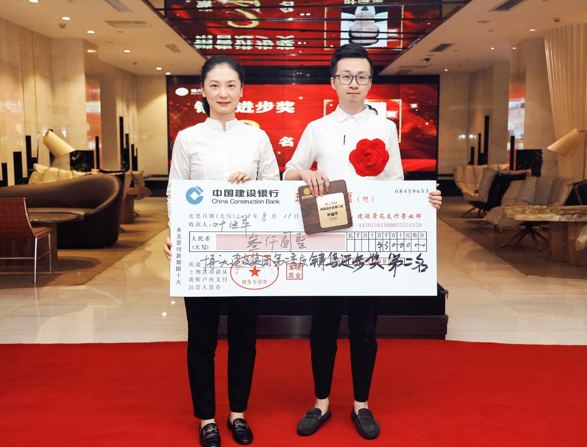 集團董事、運營總裁黃悠為銷售進步獎獲得者葉繼平頒獎