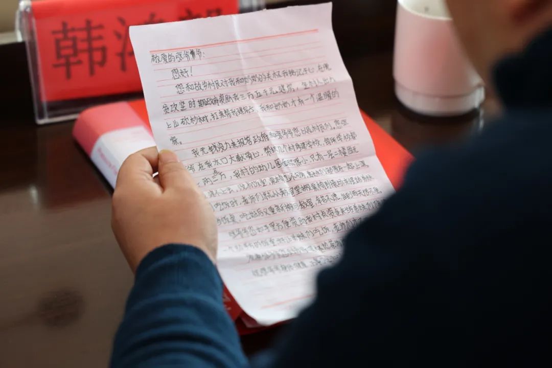 在捐贈現場,一位82歲的侗族殘疾老奶奶帶來了相依為命的孫子寫的一封感謝信,黎平縣政協副主席韓鴻毅親自朗讀,為大家分享這個小學生的感謝信,童言童語情真意切,感人至深。